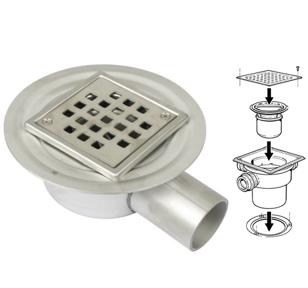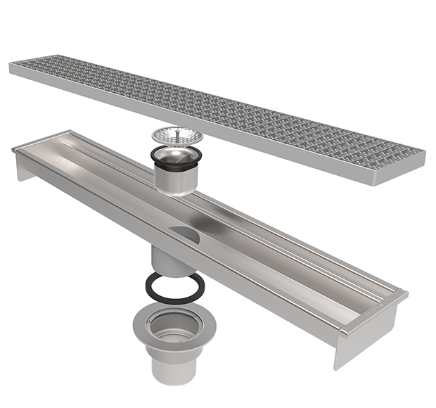 UPPER、LOWERの2つのパートに分割され、床表面の勾配に合わせてカバーの角度が自由に調整できます。トラップが内蔵され、ごみも簡単に取り除くことができます。