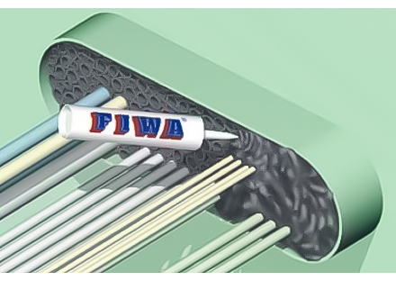 コーミング/スリーブ(主にSGPを使用)内を膨張性のある耐火シール材とシーラント材で埋めるだけで施工が完了します。