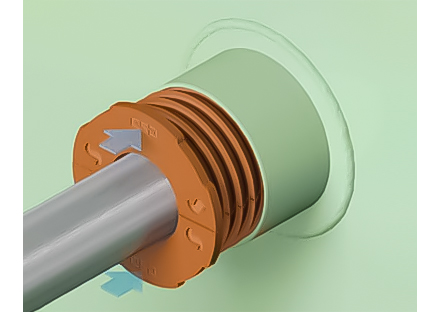 貫通部内の汚れを除去し、配管を貫通部の中央に真っすぐ通す